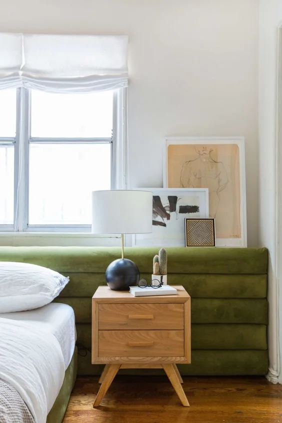 An often overlooked option for headboards is their functional capabilities. With traditional headboards, of course, you have to rely on nightstands to showcase your favorite books or set down a pair of glasses before bed. However, headboards can be surprisingly versatile if you know how to creatively use space to your advantage. Go for a deeper headboard that can act as a shelf to charge your phone, or create an inset shelf in the wall to display your items. Whichever option you choose, a headboard with shelves can make a world of difference (and free up that precious floor space!).