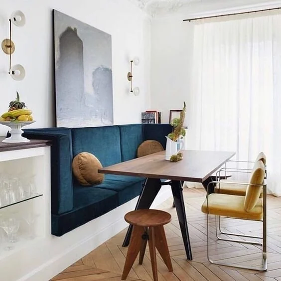 We’ve always loved banquette seating here at INVIEW - not only is it a great way to create a functional area out of even the smallest of living spaces, but it’s also got flexibility written all over it. By adding a chair or two, you can easily fit a larger group of people around the table, and because banquette seating is by nature a mix and match type of setup, it allows you to get as creative as you want (while avoiding those dreaded “sets” available at most big box stores).